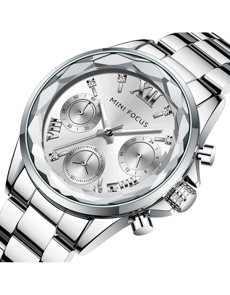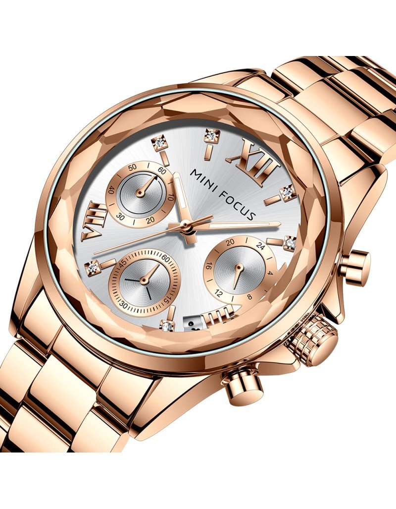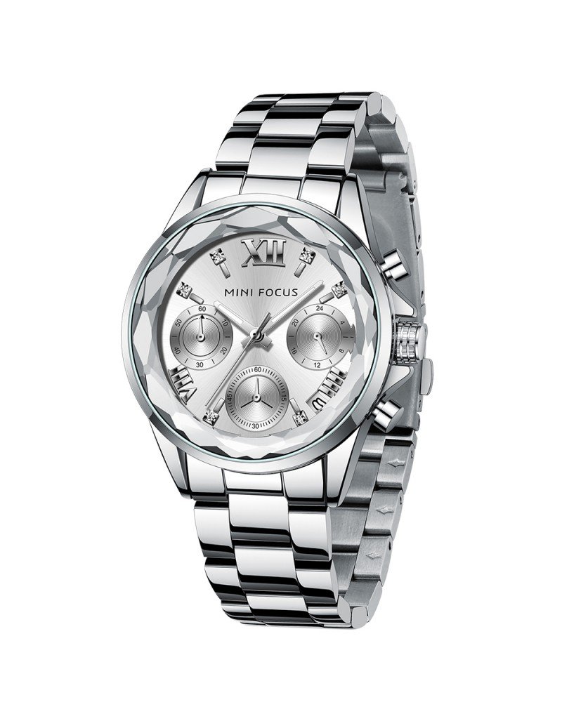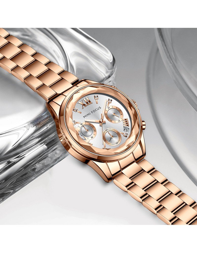 MINI FOCUS Montres mode pour femmes Marque: MINI FOCUS (MINIFOCUS) Style: Mode, Décontracté, Affaires, Luxe, Sport Caractéristique principale: 1. montre de conception de luxe, style vestimentaire de mode 2. Nouvelles tendances de la mode montre à bracelet en acier inoxydable. 3. Garantie de mouvement de 12 mois Spécifications: Diamètre du cadran: 42.9mm Épaisseur du boîtier: 9.4mm Longueur de montre: 190mm Largeur de bande: 16mm Poids de la montre: 91g Mouvement: Quartz (batterie nécessaire) Matériau du miroir: Hardlex Type de fermoir: Fermoir pliant avec sécurité Fonction: Calendrier; Boîtier en diamant; Pointeurs lumineux Résistance à l’eau: étanche au quotidien (pas pour nager ou prendre une douche) Occasion appropriée: Parfait pour toutes les occasions et événements: fête, anniversaire, affaires, décontracté, sports de plein air, activités intérieures ou utilisation quotidienne Ajouter à la liste de souhaits Ajouter à la liste de souhaits