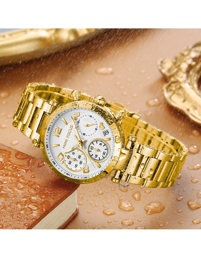 MINI FOCUS Montres mode pour femmes Marque: MINI FOCUS (MINIFOCUS) Style: Mode, Décontracté, Affaires, Luxe, Sport Caractéristique principale: 1. montre de conception de luxe, style vestimentaire de mode 2. Nouvelles tendances de la mode montre à bracelet en acier inoxydable. 3. Garantie de mouvement de 12 mois Spécifications: Diamètre du cadran: 42.9mm Épaisseur du boîtier: 9.4mm Longueur de montre: 190mm Largeur de bande: 16mm Poids de la montre: 91g Mouvement: Quartz (batterie nécessaire) Matériau du miroir: Hardlex Type de fermoir: Fermoir pliant avec sécurité Fonction: Calendrier; Boîtier en diamant; Pointeurs lumineux Résistance à l’eau: étanche au quotidien (pas pour nager ou prendre une douche) Occasion appropriée: Parfait pour toutes les occasions et événements: fête, anniversaire, affaires, décontracté, sports de plein air, activités intérieures ou utilisation quotidienne Ajouter à la liste de souhaits Ajouter à la liste de souhaits