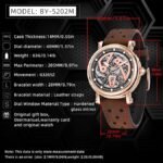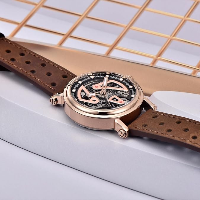 Montre Mécanique pour Homme – Cadran Squelette Noir, Étanche 50M, Bracelet en Cuir – Cadeau Élégant pour Homme